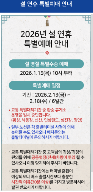 2026 설날 고속버스 예매 총정리 (잔여석 )